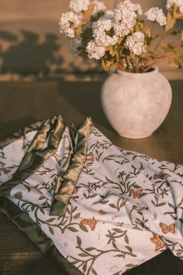 - Details: Bring a touch of springtime magic to your nursery with our Peony Garden Blanket. Featuring a delicate floral peony pattern accented with fluttering butterflies, this blanket combines cozy comfort with charming, garden-inspired style.